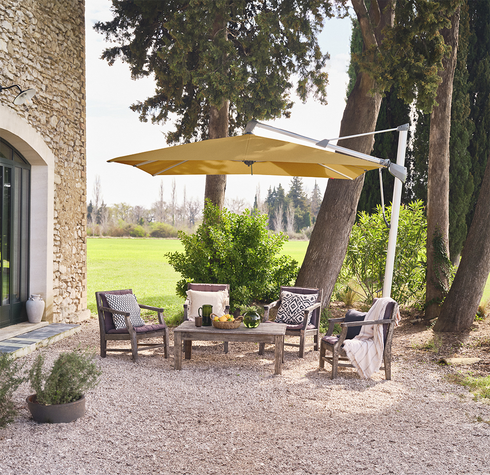 Sonnenschutz, der durch Eleganz und ein zeitloses Design besticht. Sonnenschirme passen sich wie ein Chamäleon der Umgebung an und integrieren sich dezent in das Gesamtbild. Ob Mittelstock- oder Freiarmschirm – Sonnenschirme bestechen mit höchstem Komfort in punkto Sicht-, Sonnen- und Regenschutz.